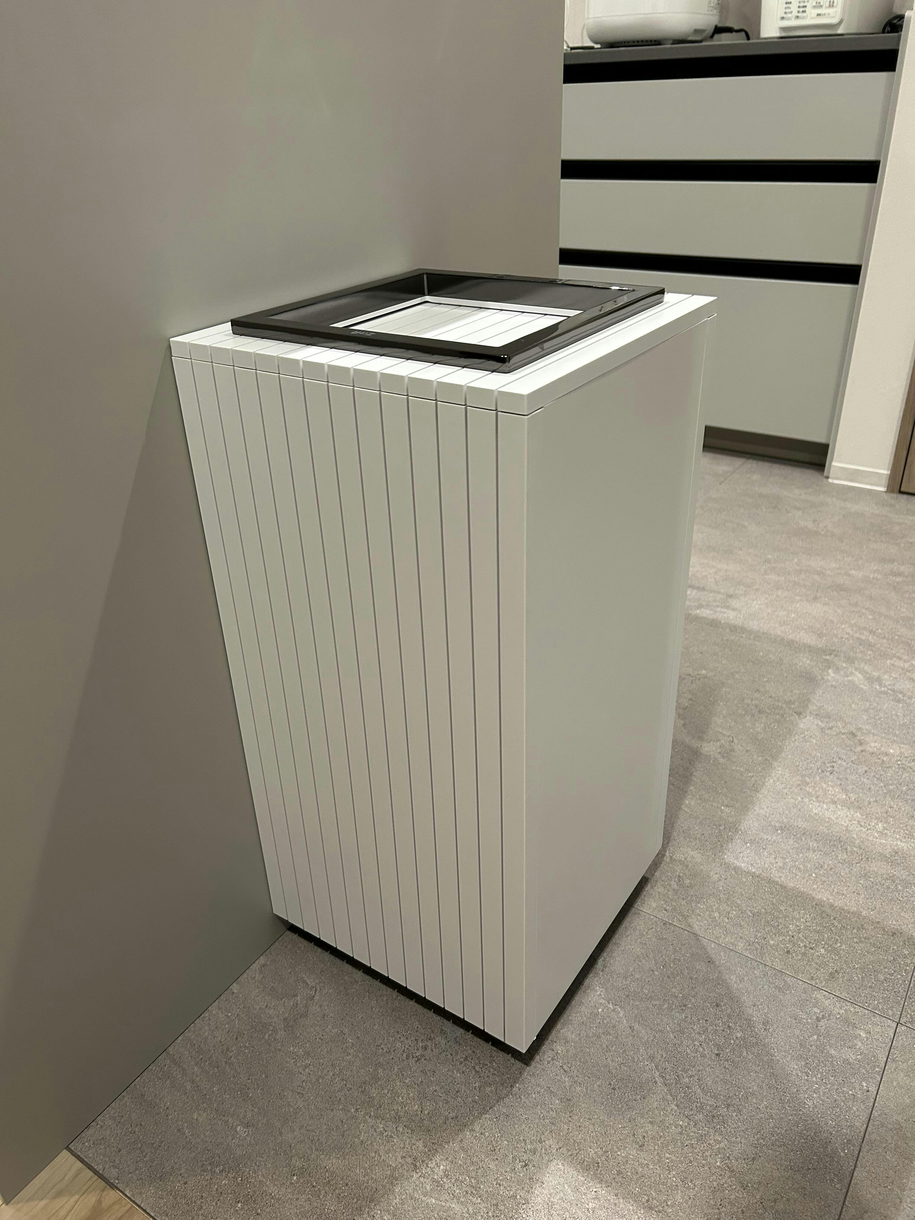 お客様にご評価いただいたデザインは、私どもが『汚いゴミを隠すのだから、ゴミ箱自体も隠すべき』という従来のゴミ箱への発想ではなく、『生活空間に常に置かれるものだからこそ、インテリアとして美しい佇まいであってほしい』という思想に基づき、生活感を徹底的に排除することを目指した、こだわりの部分でございます。