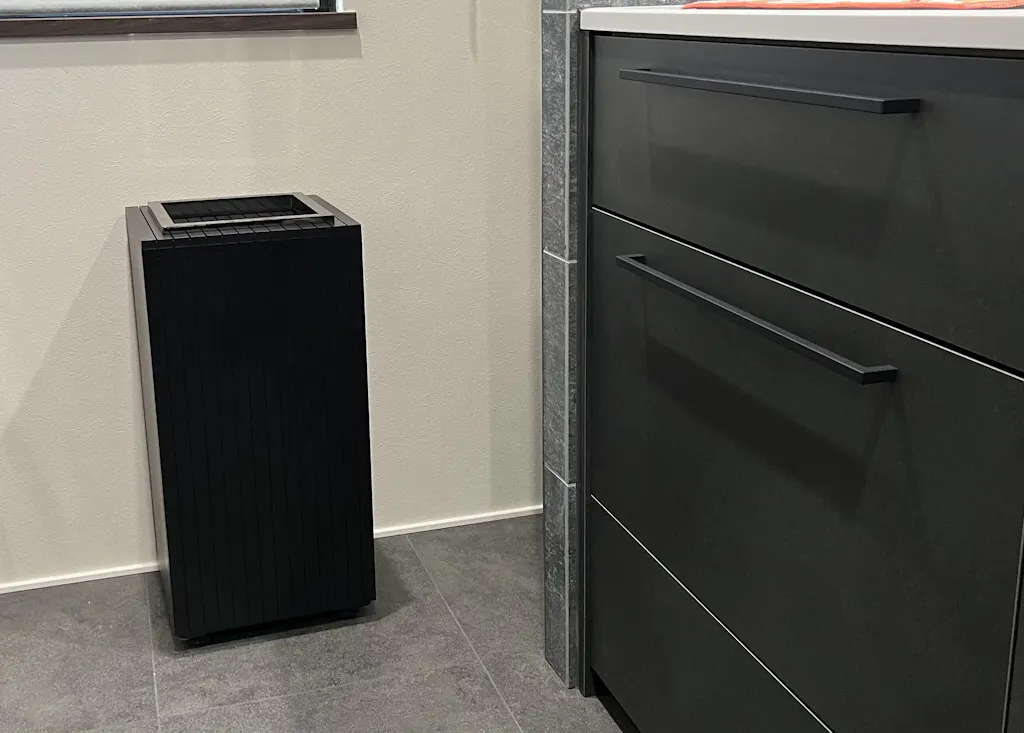 キッチンのリフォームという大切な機会に、私どもの製品をお選びいただけたこと、重ねて御礼申し上げます。「かっこいいので表に出ていてもみんなに自慢できるゴミ箱です」とのお言葉、大変嬉しく拝読いたしました。